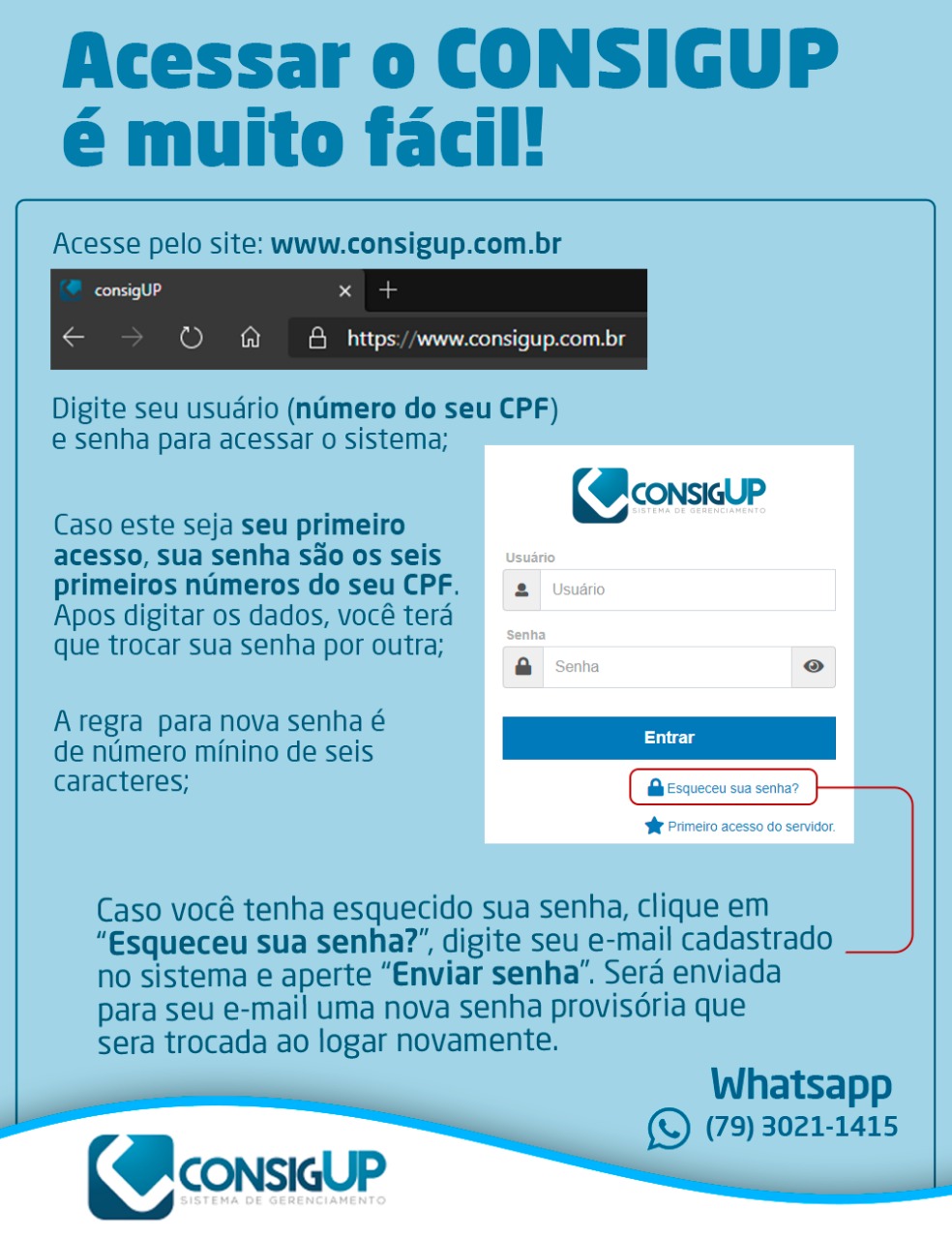 Olá Servidor, para acessar pela primeira vez o ConsigUP, informe seus dados: